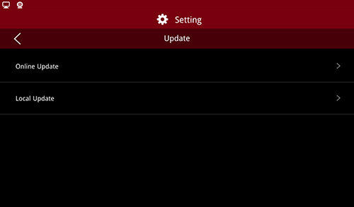 Click “Update >Local Update”, to enter local update. Insert a U disk with the installation package, the system will automatically detect whether the U disk contains a valid installation package. Then you can follow the wizard to update.