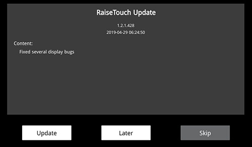 Click on “Later”, the touch screen will pop up a floating window after 5 minutes with the updating information.