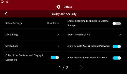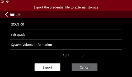 This function can enable you to export credential files and send them to Raise3D after-sales personnel for modifying printer model, serial number and other key information.