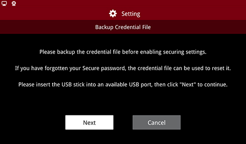In case you forget your secure password after enabling “Secure Settings”, the credential file will be backed up automatically.