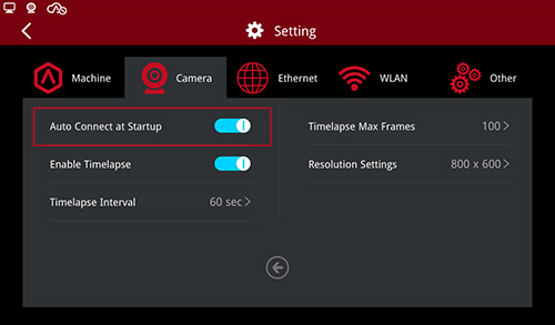 2. Make sure the Timelapse setting was turned on at the touch screen.