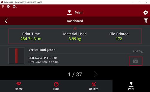 Note: 1. Timelapse can be viewed only when the print is finished.
