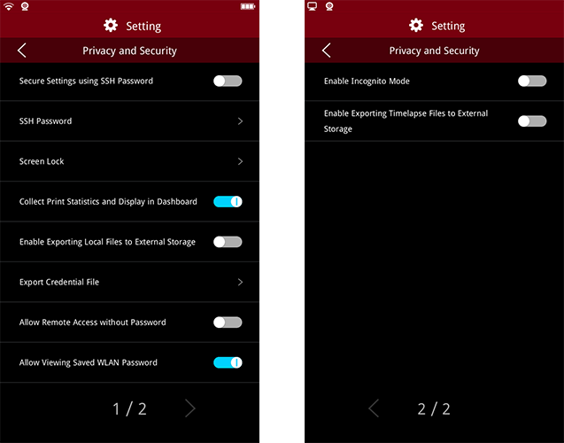 The privacy and security interface provide privacy and security settings, safeguards users' privacy and provides security services for printers.