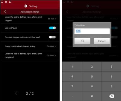 Set the value you’d like to have the bed move down to so that you can remove the printed objects on build surface more easily.