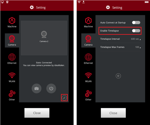 2. Make sure the Timelapse setting was turned on at the touch screen.