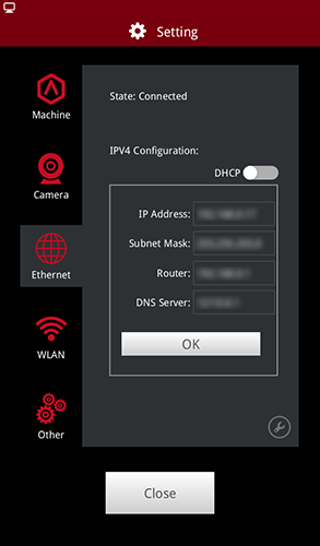 To set the detail information such as IP address, disable the DHCP. Input the information and press OK to apply.