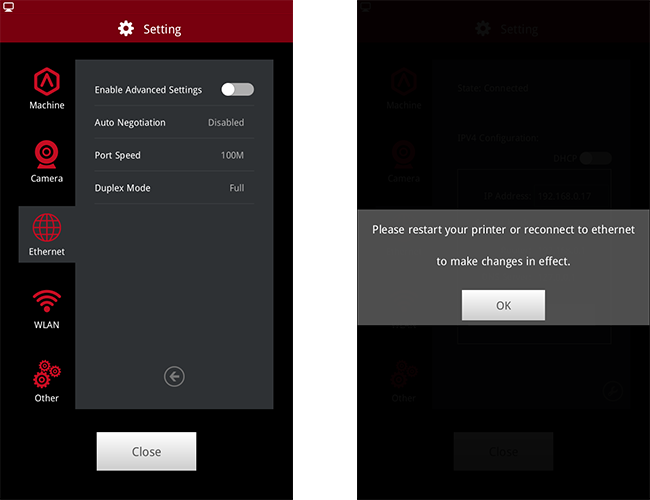 Once the Enable Advanced Settings under Ethernet tab being disabled, the Advanced Settings of Ethernet will be set back to default values.