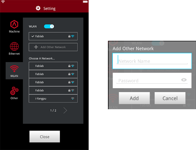 You can add a network by inputting the password. Click Add Other Network, input network name and password and then click add. Click the eye icon to control whether to display the password.