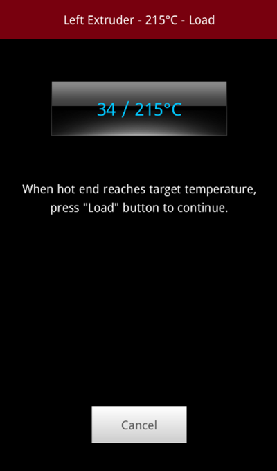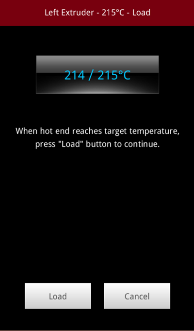 When the target temperature is reached, press "Load" button to continue.