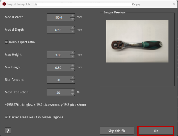 Darker areas result in higher regions: Means the darker areas will generate higher 3D model parts.