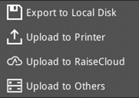 : Upload the G-Code file to RaiseCloud. (It can only work properly with ideaMaker version 3.6.0 or higher.): Upload the G-Code file to other servers. (This function is only available for ideaMaker version 4.0.0 or later.)