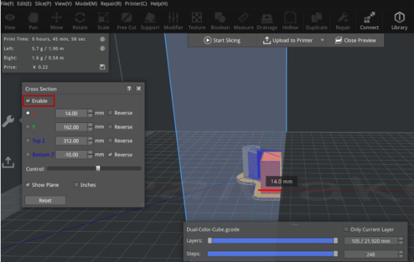 Figure 1: GCode Preview – Cross Section.