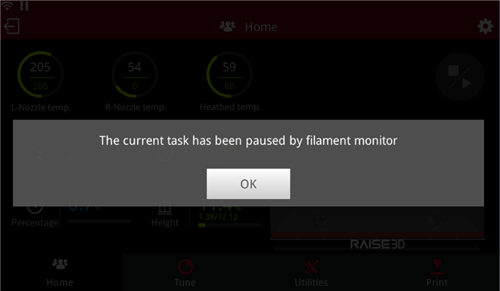 Figure 7: Task paused by filament run-out sensor.
