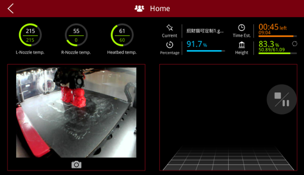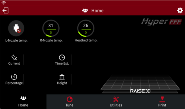 R-Nozzle temp: the temperature of the right nozzle. Upper value is current temperature. Lower value is target temperature.