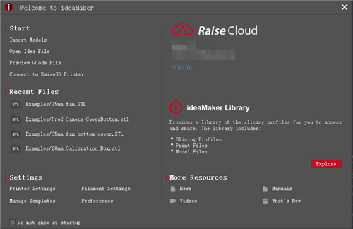 Show welcome page on startup with this function enabled, ideaMaker will show Welcome page when open ideaMaker as Figure 7.