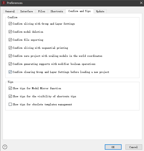 Show tips for obsolete templates management when enabled, ideaMaker will pop-up a dialog to remind the tips for obsolete templates management.