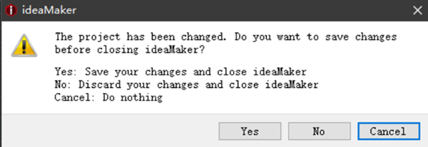 Confirm saving project when closing ideaMaker with this function enabled, ideaMaker will pop-up a dialogue box to confirm whether to save the project before closing ideaMaker.