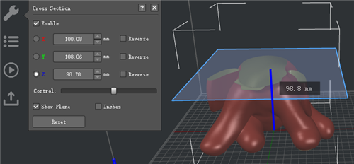 Figure 5: The slice preview with active "Cross Section".
