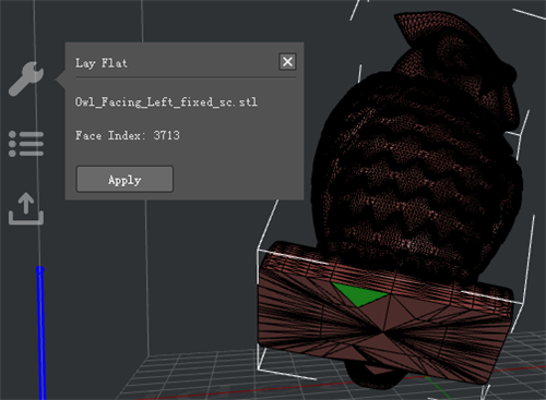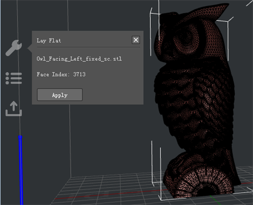 Figure 7: Click "Apply" to lay the model flat on the platform.