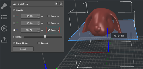 Cross Section will divide the model into two parts. Click on Reverse to remain the upper part of the model.