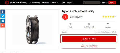 Option 1: Open ideaMaker, go to ideaMaker Library and click Add to ideaMaker button in the page you want to download the profile, then ideaMaker will pop-up an interface to remind you to download the slice template. Click the Next button to import the slice template into ideaMaker.