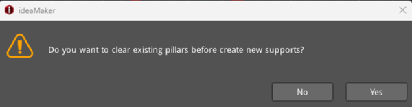 Note: If supports have been previously generated, ideaMaker will ask you whether or not to remove the existing supports before creating new supports.