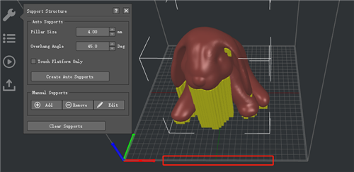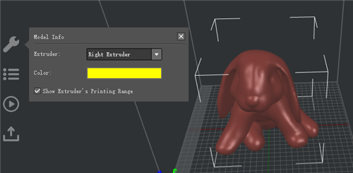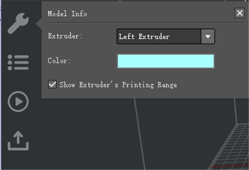 Note: This function verifies model is placed inside of the extruder’s printing range.