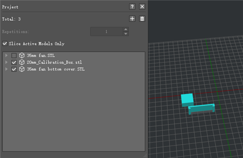 Slice Active Models Only with this function enabled, ideaMaker will slice the active models only, the inactive models will be ignored.