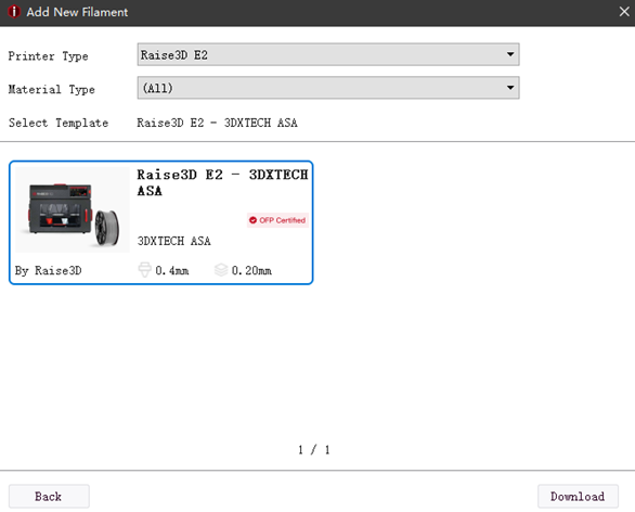 For example: We select the filament brand “3DXTECH” and click the "Next" button, then we can choose the printer type and the filament type refer to Figure 2.