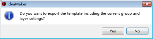 When export a slicing template, ideaMaker will ask if you want to export the group and layer settings together as shown in Figure 5.