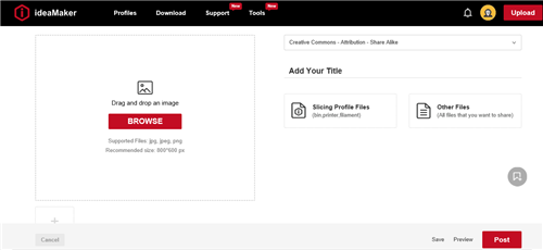 Step 1: Click the button of Share to ideaMaker Library to post the slice template as Figure 6. And it will jump to ideaMaker Library website directly as Figure 7.