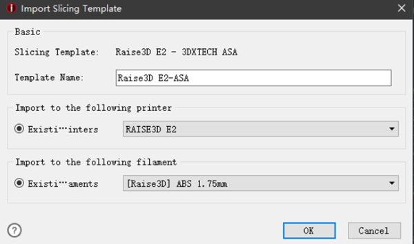 Import from ideaMaker Library refers to importing a slice template (.bin or .data file) from ideaMaker Library.