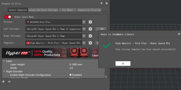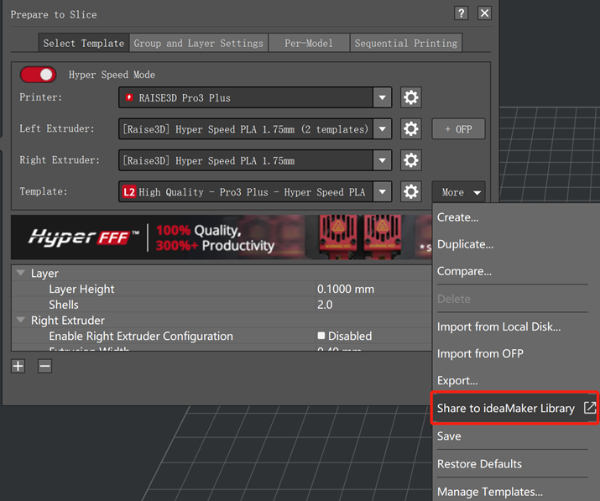 Share to ideaMaker Library refers to share the template from ideaMaker to ideaMaker Library.