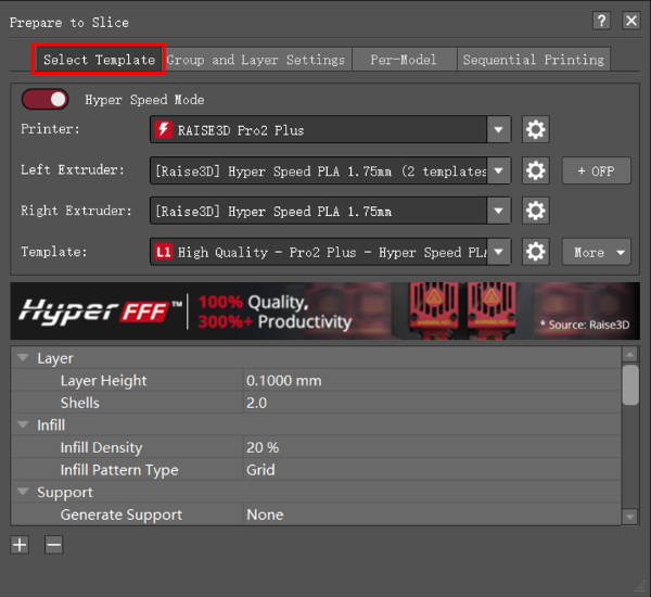 Figure 1: "Prepare to Slice" menu. "Select template" tab.