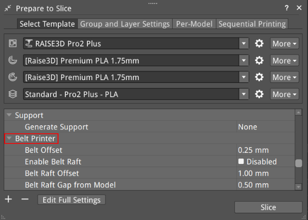 Figure 4: Set Belt Raft Offset to 5mm.
