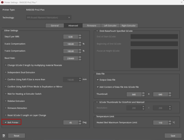 2. This option can be used when the Belt Printer function is enabled and can be found under Printer Settings.