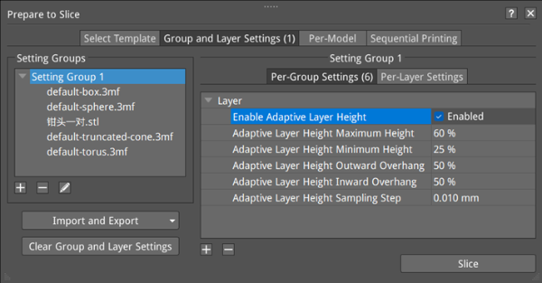 Adaptive Layer Height Minimum Height: Refers to the minimum adaptive layer height.