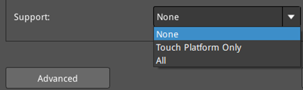 Ø Touch Platform Only: Refers to only adding support structures that will only touch the build plate. The support structures located from one surface of the model to another surface of the model will not be created.