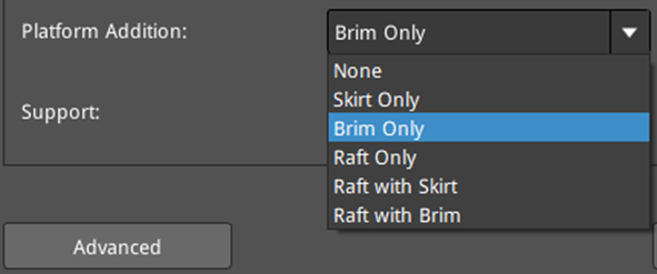 Platform Addition: Indicates whether to use Raft/Brim/Skirt.