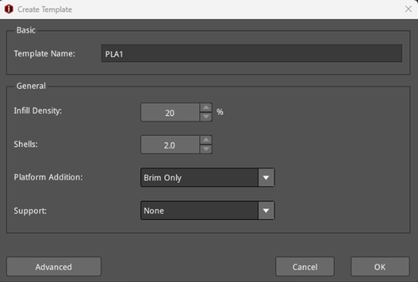 For example, create a new template and name it PLA1. Click OK and the Create Template panel will display the Basic and General settings of the new template, as shown in Figure 2. After making some basic settings, click OK to complete creating the new template, as shown in Figure 9.