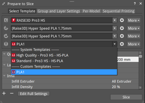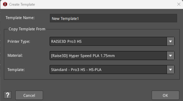 In the Prepare to Slice panel, click the fourth More from top to bottom, as shown in the above Figure 2. Click Create to open the Create Template panel.