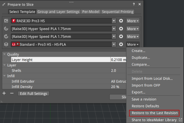 Figure 1: Restore the existing template to its last saved settings.