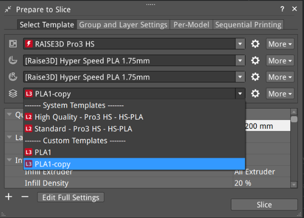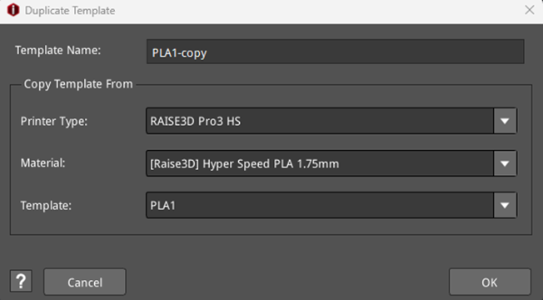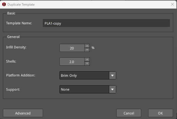 Template Name: Refers to the new template’s name. ideaMaker will automatically name the new template “copied template’s name-copy”. You can also rename it.