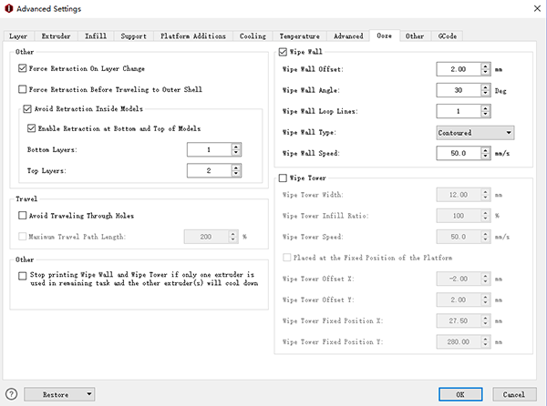 Figure 5.87: Set "Wipe Wall Type" to be "Contoured".