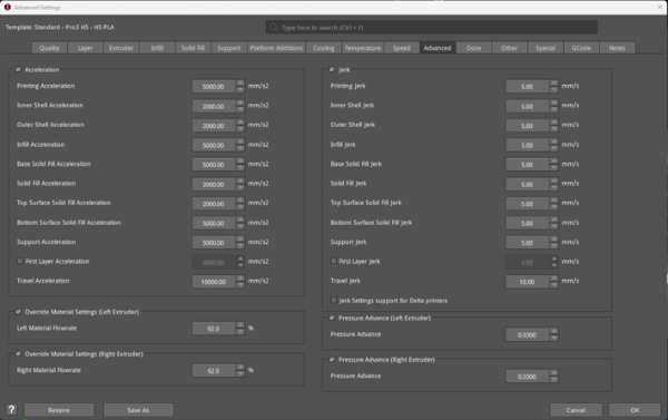 (2) Override Material Settings (Left/Right Extruder)