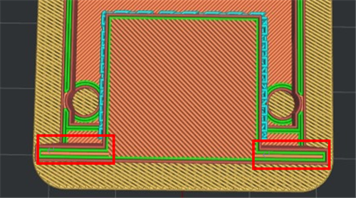 When the diameter of a selected area is lower than the set value, or when the diameter of holes on shells is lower than the set value, these sections will be printed out with the settings of Small Features, which requires a lower printing speed and the increased infill density.