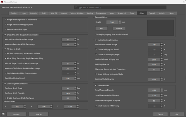 Small Features Speed Multiplier: The printing speed percentage for the detected small feature areas.