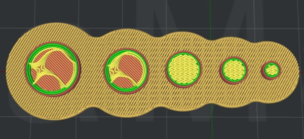 When the diameter of a selected area is lower than the set value, or when the diameter of holes on shells is smaller than the set value, these sections will be printed out with the settings of Small Features, which require a lower printing speed and an increased infill density.