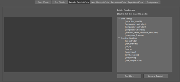 (3) Extruder Switch GCode: The customized GCode which will be executed when extruders switch.