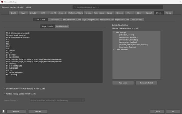 Validate Heatup GCode in Start GCode: With this function enabled, ideaMaker will check for the Heatup GCode in the Start GCode automatically.